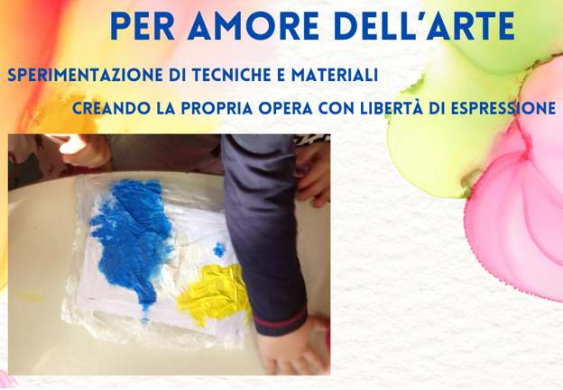 Sabato 20 aprile 2024, dalle ore 09:30 alle ore 11:30, presso l'Asilo Nido Numero 03 di viale Rimembranze, ci sarà un laboratorio per la sperimentazione di tecniche e materiali per creare la propria opera con libertà di espressione! Attività rivolta ai bambini e alle bambine di età compresa tra 0 e 6 anni. Il costo per ogni partecipante sarà di 15€. Per info e iscrizioni chiamare il numero 327/4462680, oppure inviare una mail a