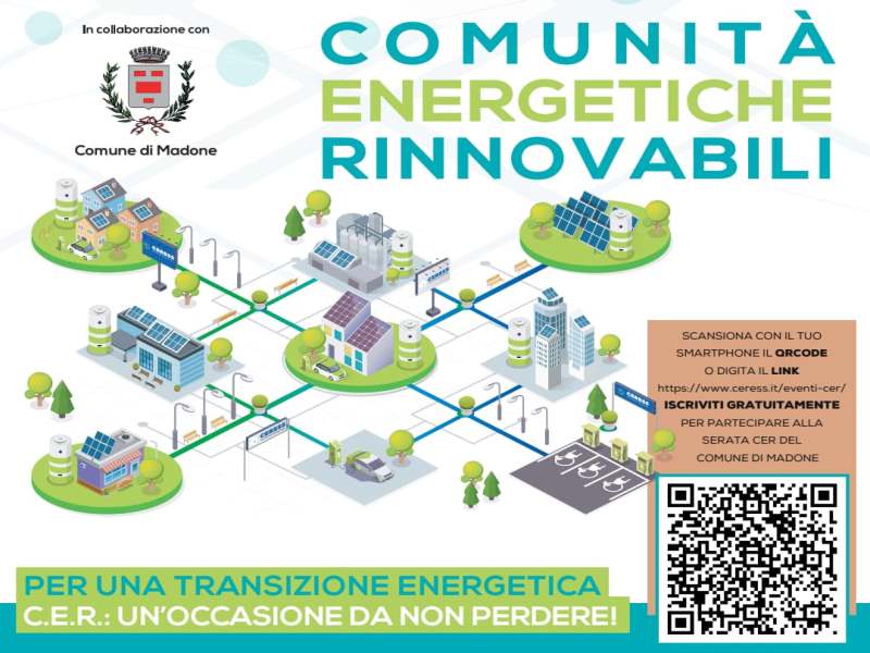 Evento promosso dal Comune di Madone in collaborazione con CERESS COMUNITÀ ENERGETICHE RINNOVABILI (www.ceress.it) e FONDAZIONE FLANDER NORD E.T.S. (www.fondazioneflandernord.it).