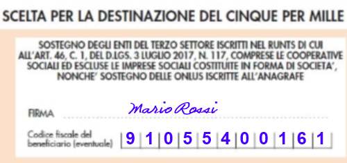 Per donare il 5x1000 all'Associazione "MADONE 2.0 ODV", nella specifica sezione del Modello 730, firmate all'interno del riquadro "Sostegno degli Enti del Terzo Settore iscritti nel RUNTS di cui all'Art. 46 C. 1 del D.Lgs. 3 luglio 2017, n. 117, comprese le Cooperative Sociali ed escluse le Imprese Sociali costituite in forma di società, nonché sostegno delle ONLUS iscritte all'anagrafe" e inserite il Codice Fiscale 91055400161, come mostrato nelle immagini sottostanti:
