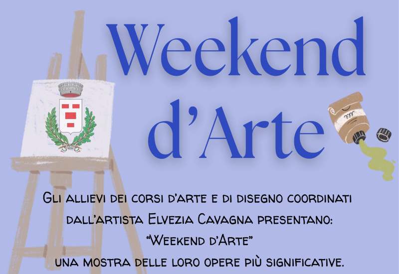 Gli allievi dei corsi d'arte e di disegno coordinati dall'artista Elvezia Cavagna, presentano presso la Sala Civica di Piazza S. Giovanni "Weekend d'Arte", una mostra delle loro opere più significative. L'inaugurazione sarà venerdì 16 maggio alle ore 20:30, mentre gli orari d'apertura di sabato 17 e domenica 18 saranno la mattina dalle 9:30 alle 12:00 e il pomeriggio dalle 15:30 alle 18:30.