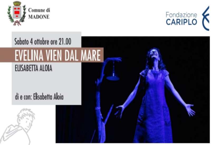 Come ogni anno fa tappa nel nostro paese la rassegna teatrale "Terra di Mezzo". L'appuntamento a Madone sarà il prossimo 4 ottobre, alle ore 21:00 presso l'Auditorium delle Scuole Medie, con lo spettacolo intitolato "Evelina vien dal mare" di Elisabetta Aloia. Per tutti i dettagli riguardanti l'evento e per conoscere anche tutte le date della rassegna, vi invitiamo a visionare la Locandina che troverete nel link sottostante.
