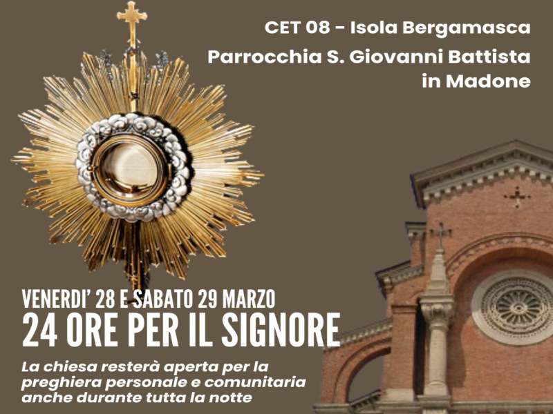 Venerdì 28 e sabato 29 Marzo la chiesa resterà aperta per la preghiera personale e comunitaria anche durante tutta la notte. Ricordiamo inoltre i Momenti Comunitari: